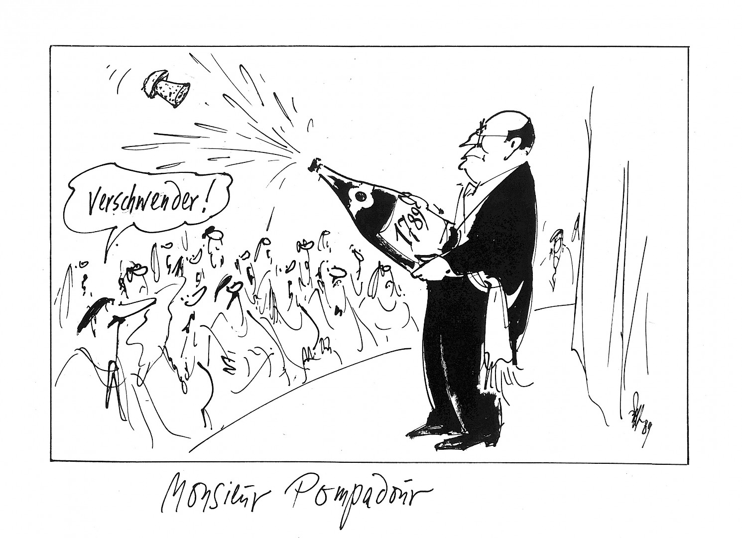 | Texte auf dem Bild | auf Flasche: 1789; in Sprechblase: VERSCHWENDER! |
