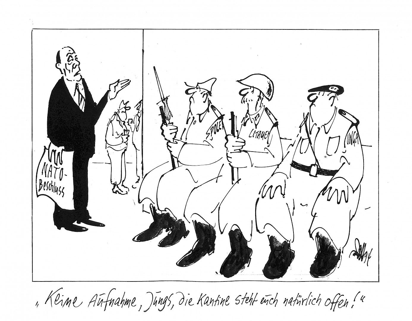 | Texte auf dem Bild | auf Papier: NATO-Beschluss; auf Uniformen: POLE[N]; LITAUEN; UNGA[RN] |