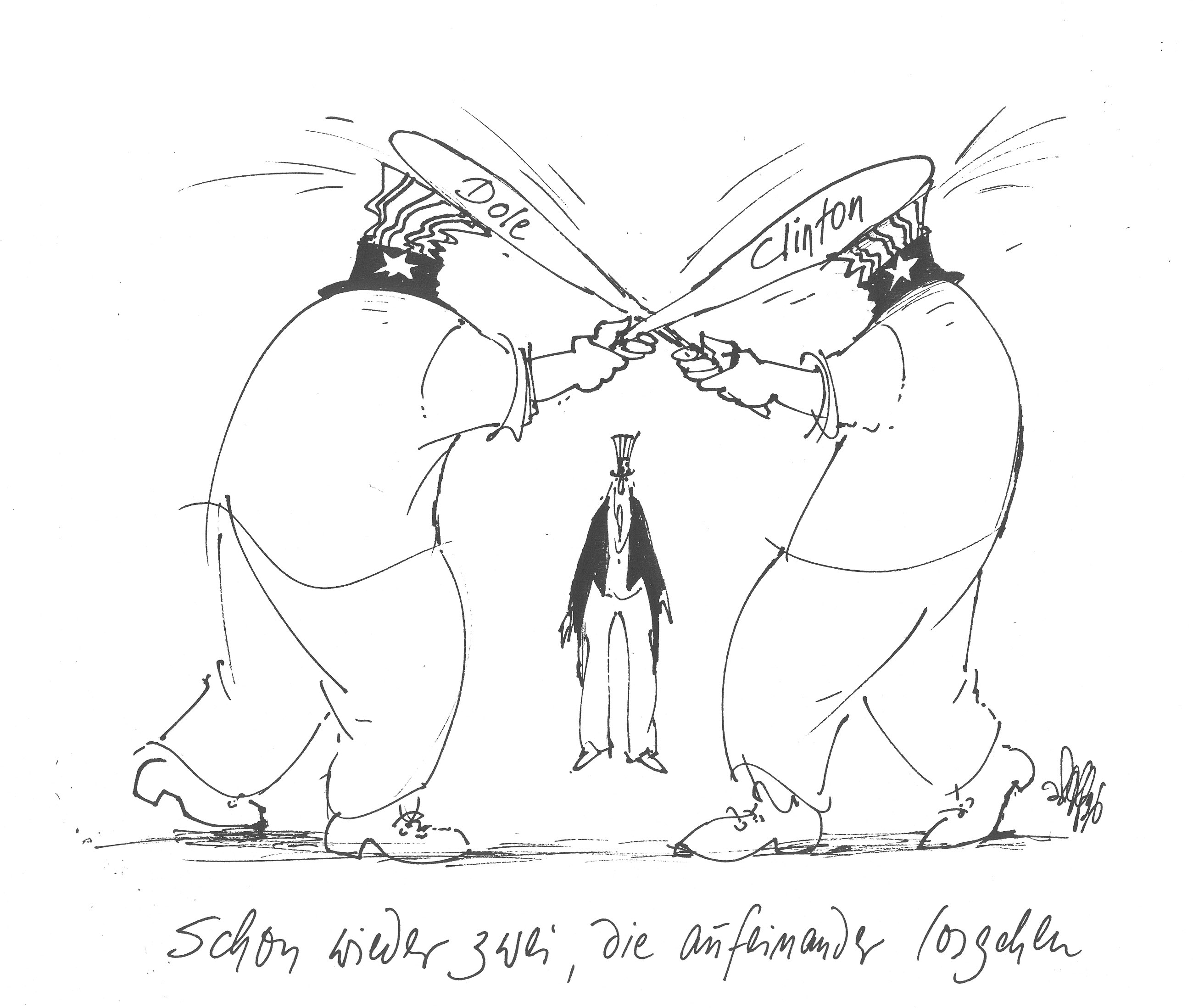 | Texte auf dem Bild | auf Keulen: Dole; Clinton |