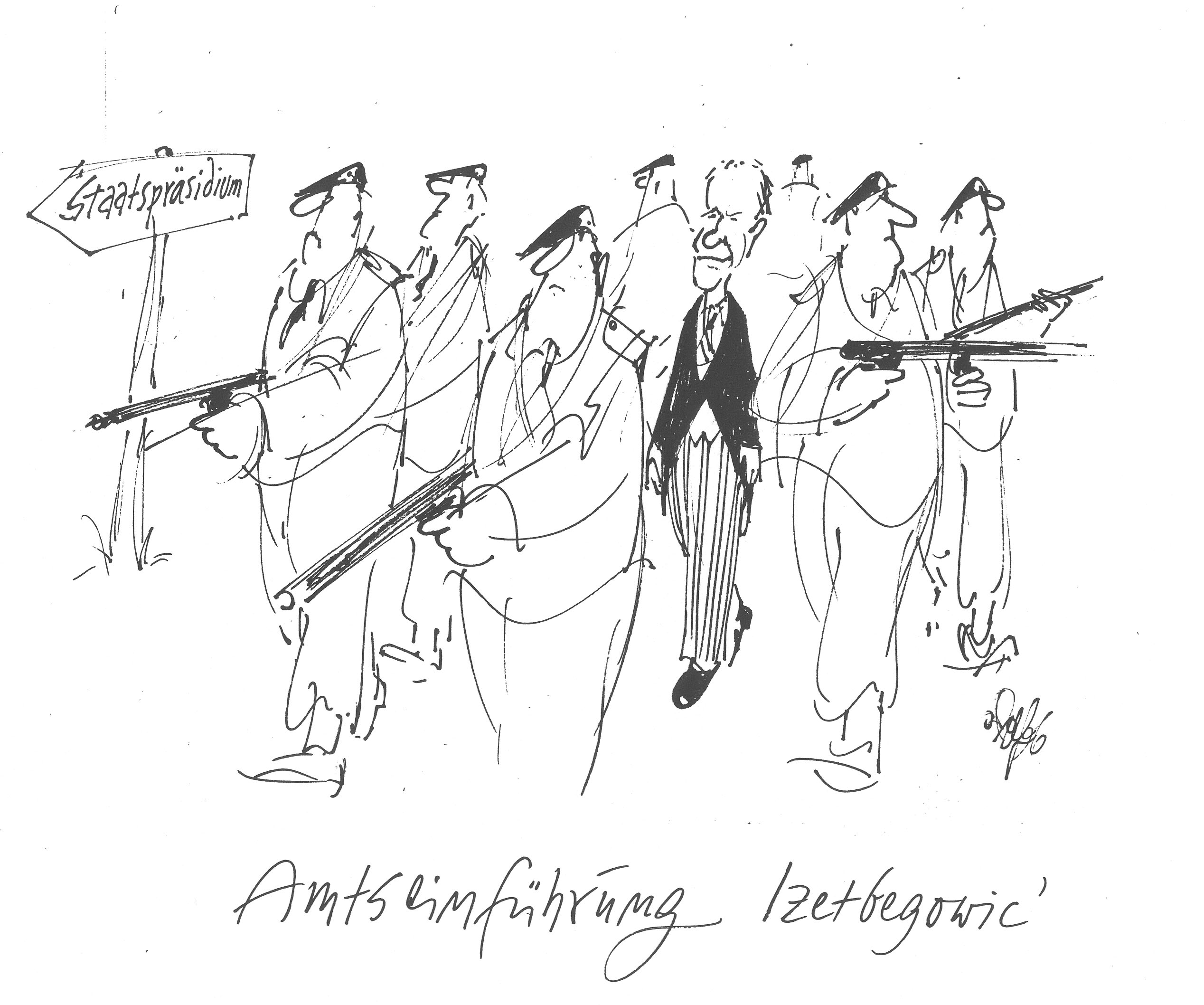Amtseinführung Izetbegovic' [unvollständige frühere Bildunterschrift überklebt]