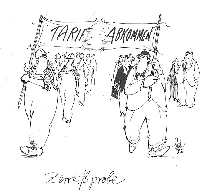Gerhard [sic!]: "Sollten wir doch umfallen, dann wollen wir wenigstens weich landen!" [Frühere Bildunterschrift unleserlich überklebt]