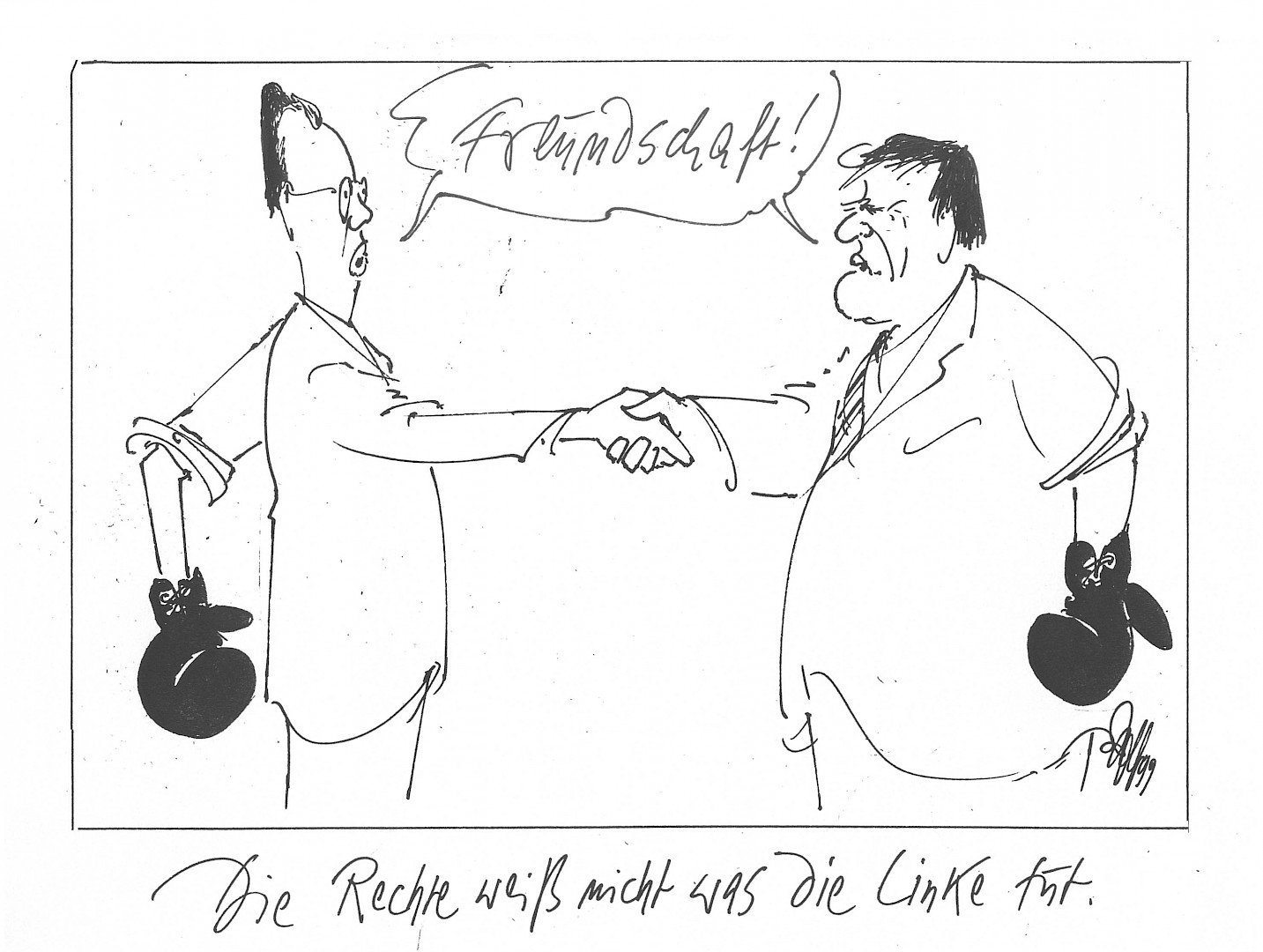 Bildbeschriftung | Die Rechte weiß nicht was die Linke tut. |