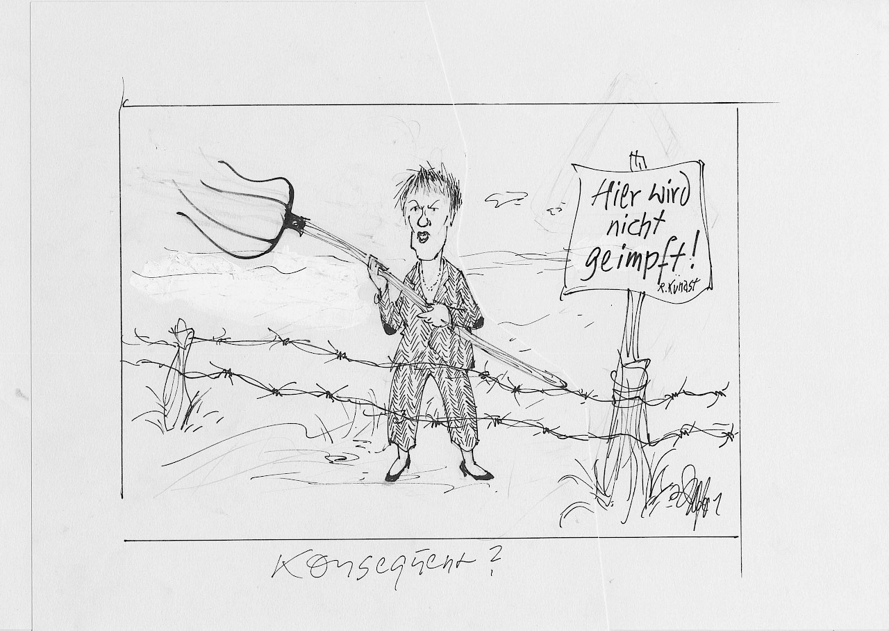 Texte auf dem Bild | auf Schild: Hier wird nicht geimpft! R. Künast |