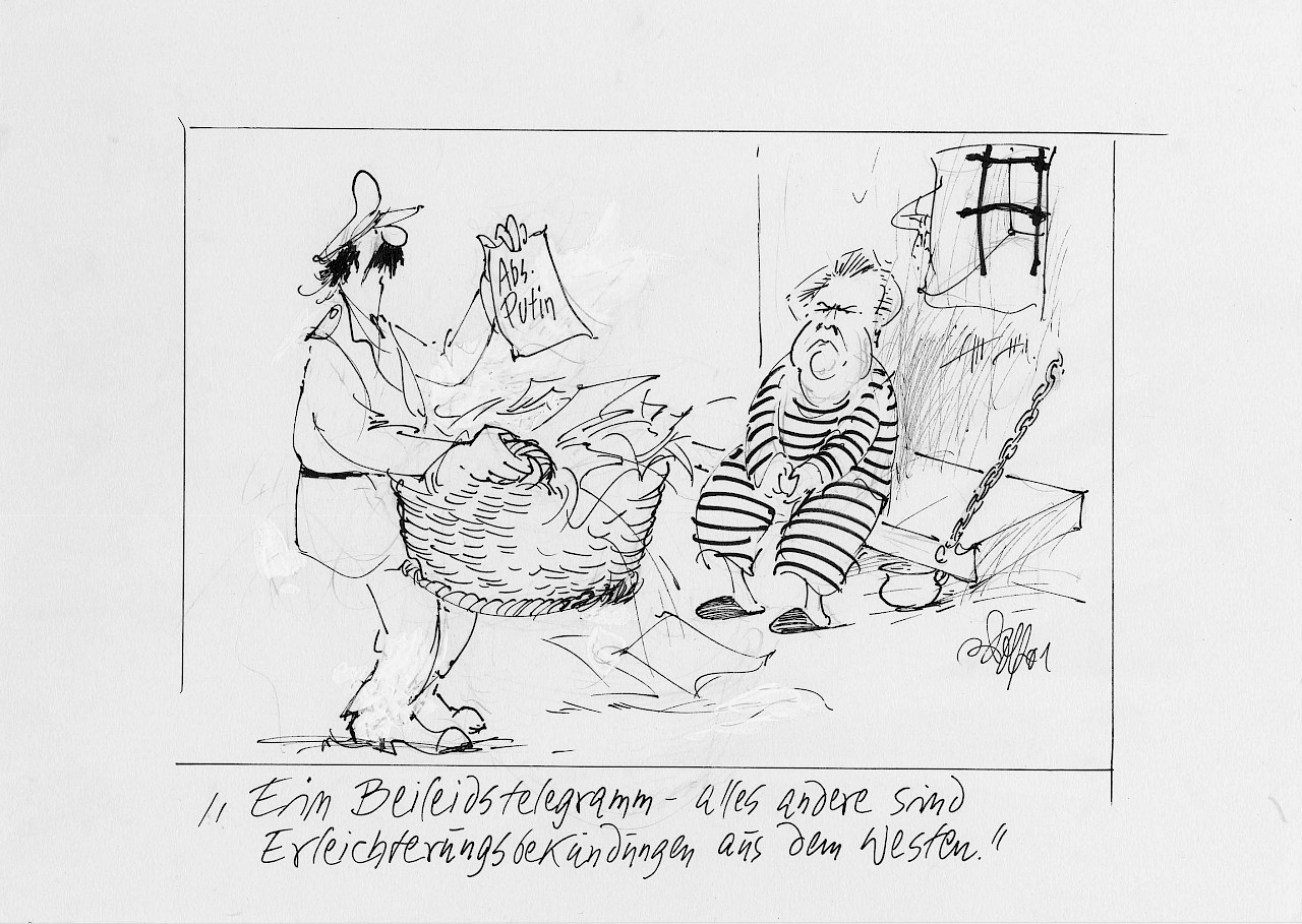 | Bildbeschriftung | "Ein Beileidstelegramm - alles andere sind Erleichterungsbekundungen aus dem Westen." |